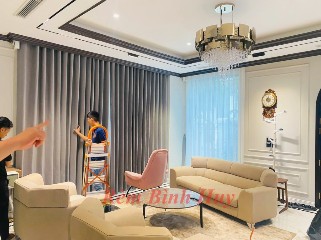 Tông màu ghi xám giúp mang nét hiện đại, trẻ trung, rất dễ kết hợp màu với các vật liệu nội thất khác. Khi sử dụng rèm màu ghi xám bạn sẽ không phải lo sợ giặt rèm thường xuyên. Bởi chúng không hề dễ bị xuống màu hay dính bẩn. Lắp đặt rèm cửa 2 lớp cao cấp cho biệt thự tại Vinhomes tạo nên sự mềm mại, uyển chuyển. Khiến không gian nhà bạn trở nên cuốn hút hơn.